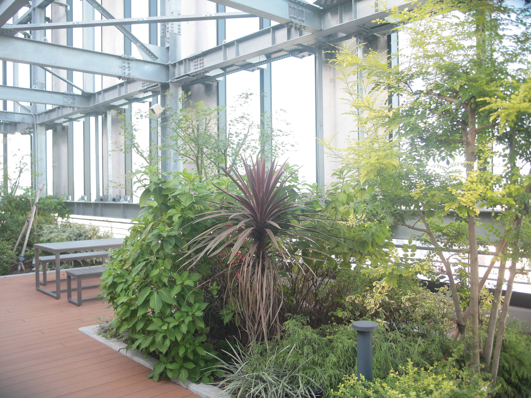 維持管理業務では、発注者さまのご要望やニーズに沿いつつ、将来的に植物が生育しやすい環境に整えていくことが欠かせません。植物は環境によって管理方法が異なります。気温や天候はもちろん、周辺の構造物の影響を受けることもあります。特に、都心部のオフィス街では、隣に大きな建物ができることで日照条件が大きく変わるようなケースもあります。そのため、施設内だけでなく周辺の環境にも配慮した上で工夫を凝らし、長い目で見てその場所、その植物に適した維持管理をすることを日々意識します。