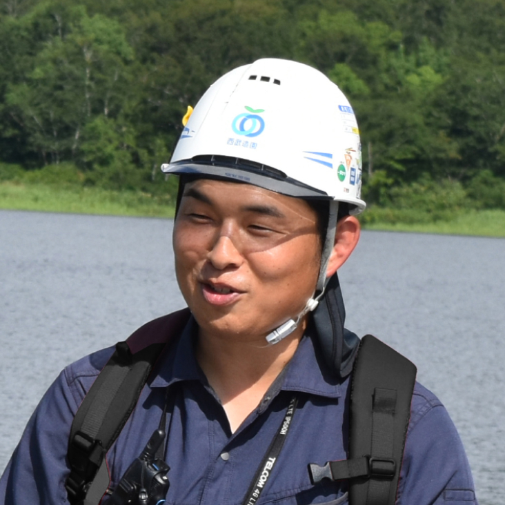また、東北営業所では標高1,000mを超える山間僻地での現場に携わることもあり、少人数の体制下で工夫を凝らしながら、周辺の自然環境に配慮した工事に努めています。在来植生への影響を最低限に抑えるために、足場を工夫したり、加工屑の飛散防止枠を手作りしたこともあります。また、ヘリコプターで資材搬出入を行うために荷造りを工夫し、協力企業の方と綿密に調整しながら業務を進めたこともありました。西武造園の中でも珍しい事例も経験しました。このような貴重な経験も、今後業務をする上での糧になっていくと思います。