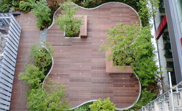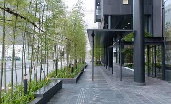 また、屋上菜園、壁面緑化、公道空間への涼霧ミストなどによるヒートアイランドの抑制や、京都産にこだわった植栽による生物多様性に配慮した施設です。