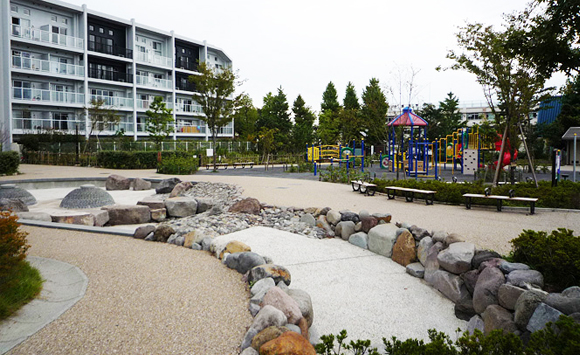 まちの防災機能を高めるため、2010年4月に開園した約2.2haの公園です。