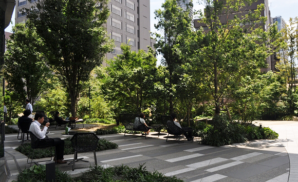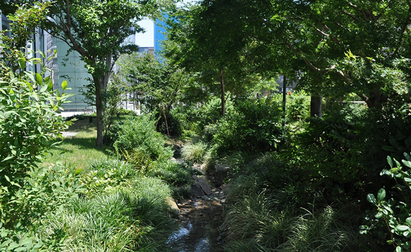 さらに、この都心の広大なオアシスでは、生物多様性に配慮した豊かな緑やせせらぎを創出し、JHEP認証(公益財団法人日本生態系協会運営)で最高ランク「AAA」を取得しており、東京の環境軸線上に位置づけられる基点として、都市の生物環境のネットワークについても貢献しています。
