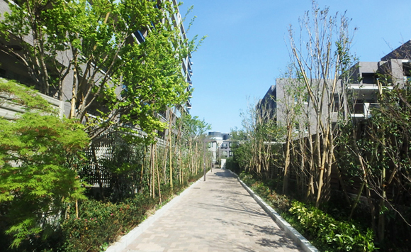 また、敷地中央には全長約180mの壮麗な並木道が横断し、邸宅とまちの暮らしをゆるやかに結びつけています。