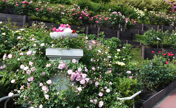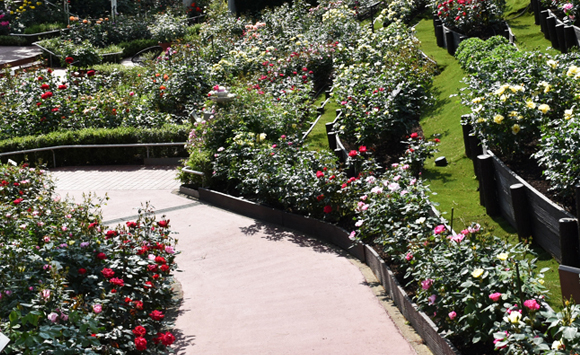 西武園ゆうえんちのローズガーデンは、約100種類1,300株のバラが「香りのガーデン」や「ホワイトガーデン」などテーマ別に5つのガーデンに分けられ、様々な品種の特色を楽しみながら観賞することができます。