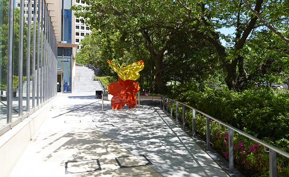 パブリックアートを中心とした”花の広場”、赤坂御門の歴史的遺構を保存しつつデザインされた”空の広場”、紀尾井タワー、紀尾井レジデンス、赤坂プリンス クラシックハウスの中心に位置する”水の広場”、水と緑の溢れ、四季の移ろいを愛でることのできる”芽生えの庭”、近隣の緑地と連続するエコロジカルネットワークの拠点となる”光の森”、花の広場と空の広場を結ぶ弁慶濠沿いの”テラスの小道” と、起伏に富んだ地形を生かしつつ、四季により変化する景色を望む空間を設け、回遊性、利便性に溢れる、緑豊かな空間を創出しています。