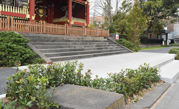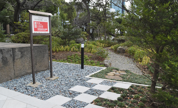 当社では、2019年10月より日比谷通り取合い歩道の整備、門周辺の樹木整理・林床整備等、周辺の景観整備を行いました。歩行の快適性・安全性を確保するとともに、二天門超しの東京タワーや増上寺建築といった、長く埋没していた伝統的な景観を再生しました。
