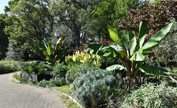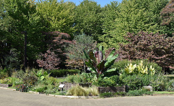 地球温暖化により市街地で越冬するようになった亜熱帯植物をメインとして植栽し、環境の変化に順応する植物の強さや生物多様性を問いかけます。個性豊かな亜熱帯植物が東京で力強く生きる魅力的な姿は、地球環境問題への気づきを私たちに与えてくれます。地球温暖化による気温上昇、豪雨などの異常気象が多発するなかで、改めて「植物」や「土」がもつ環境改善の役割を見つめ直し、緑の大切さを発信します。