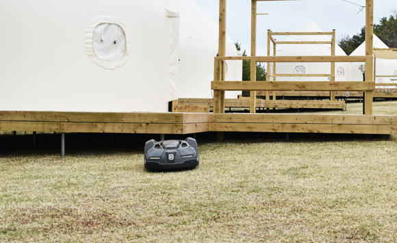 本施設において、約12,000㎡の敷地面積のうち、およそ半分が芝生エリアになっており、ロボット芝刈機「Automower™(オートモア)」4台による維持管理を行っています。