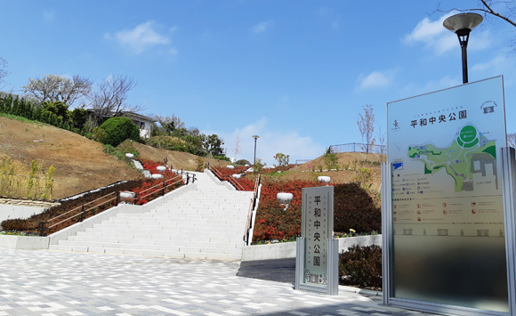 2021年4月に、「中央公園」を「平和中央公園」と名称変更し、リニューアルオープンした公園です。