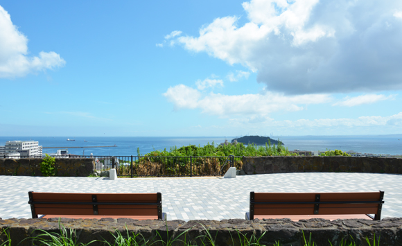 高台に位置しているため市街及び東京湾を一望でき、市民の憩いの場として親しまれています。また、旧日本軍の演習砲台跡を利用して造られた公園で、園内には戦没者慰霊塔や平和への願いを込めたモニュメントをはじめとした文化や歴史の碑なども設置され、平和を祈念する場としての役割も担っています。