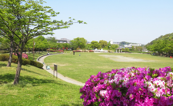 テニスコートと野球場を中心に、広々とした芝生広場がある公園です。遊び場や、水遊びのできるせせらぎがあり、子供連れで楽しむことができます。その他、レストハウス、駐車場もあります。