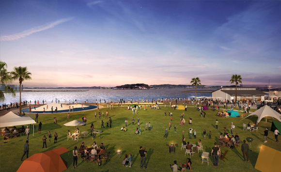 「横須賀の魅力を創造・発信する拠点- YOKOSUKA “WA” PARK – ~人がつながり、心をつなぎ、未来を創る・”WA”が広がる公園~」をコンセプトに、周辺施設との連携を生み出す開放的なエントランス空間や、大規模イベント空間、海辺の開放的な雰囲気を感じられるとともに日常的な憩いの場やアクティビティを提供する空間の整備などを行う予定です。